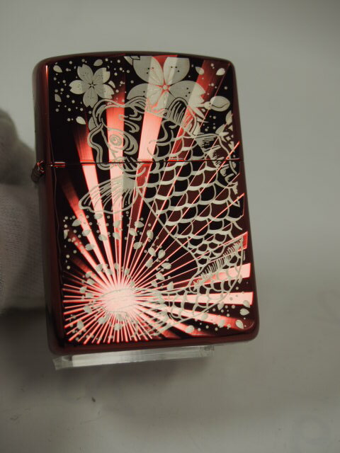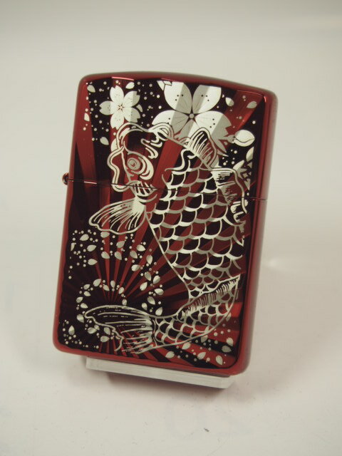 Zippo ARMOR Case 【鯉桜】 レッド イオンコート&レーザー彫刻 ■Zippo ARMOR Case #162 鯉桜 、レッドイオンコート仕上げ本体に、美しいデザインをレーザー彫刻により表現しています。